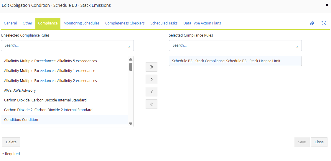 La gestión de esta configuración permite vincular las actividades del día a día, como el monitoreo ambiental, la validación de cumplimiento normativo y la generación de reportes, con las obligaciones de la organización.