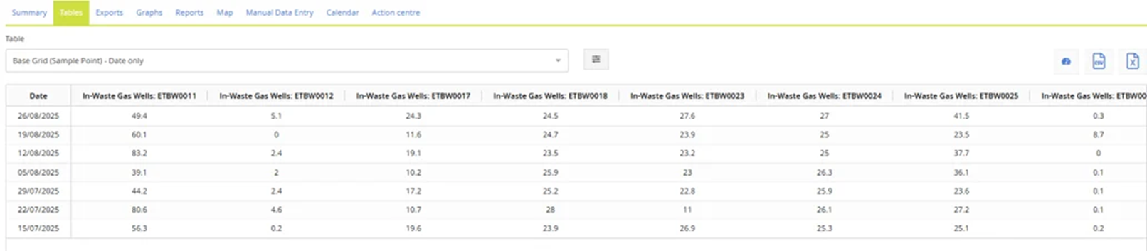 Se ha añadido un nuevo Tipo de Tabla Base con los Puntos de Muestreo en los Encabezados (Sample Point Header). Similar a una Grilla con Variables en los encabezados, pero en formato pivotado, este diseño permite mostrar los datos con los Puntos de Muestreo como columnas principales de la tabla.