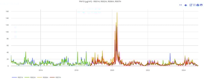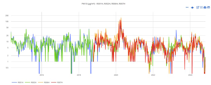 Much of the Graphing has supported Compliance Limits to be shown for some time. As the Graphing options have expanded, particularly with options to summarise data, not all compliance configured in the system will be applicable in all scenarios (a spot compliance limit wouldn't apply directly to a monthly average). To make it quick and easy for users to add limits, compliance or annotations specific to the plot, 20.1 supports a new annotations feature.