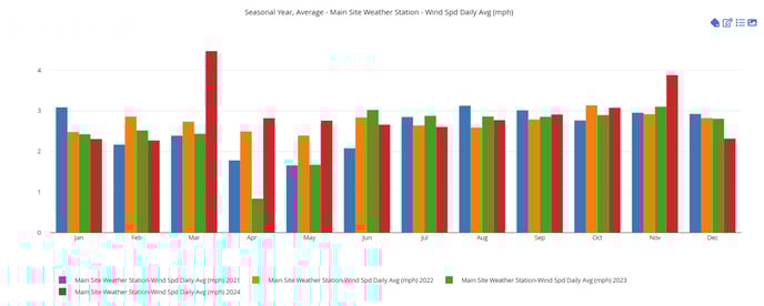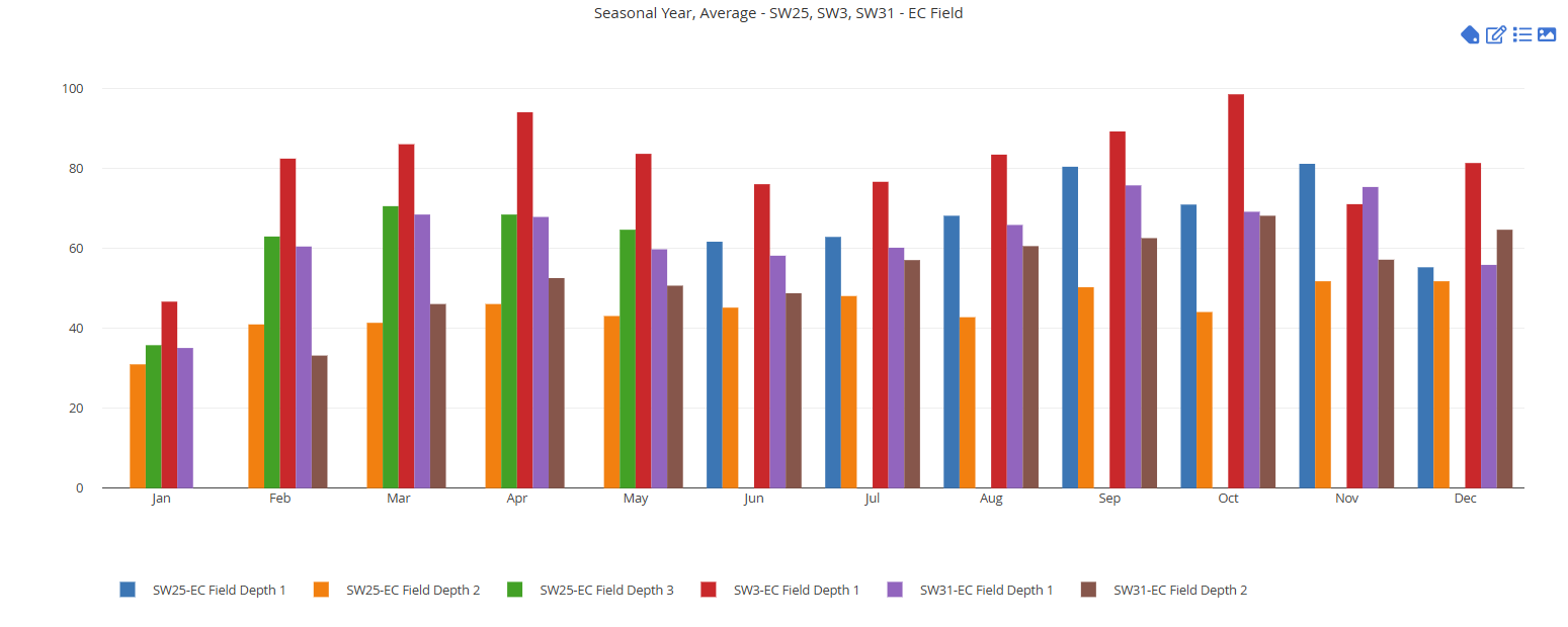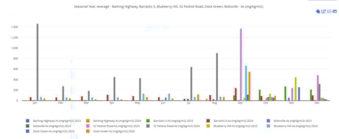 Yearly - Each series will be a year, and each increment of the x-axis will represent a month of the year. This is useful for more periodic data, such as daily or monthly, to observe trends over several years compared to the months of the year.
