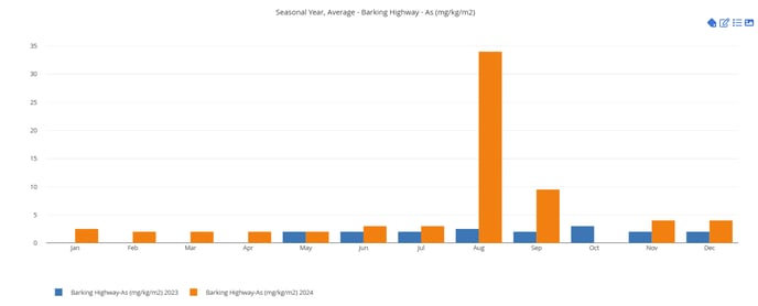 If the Dataset includes multiple Sites/Data Types, the user will first be given the option to choose the appropriate one. Then, users can select the Sample Point(s) and Variables to be plotted. In many use cases, comparisons will be best made with a single Sample Point and Variable. However, the option to include more is provided where applicable.
