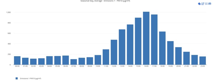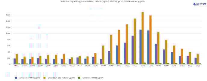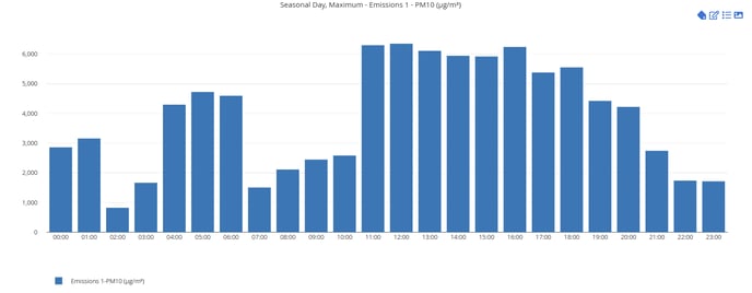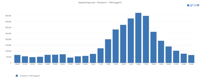 Day - Each series will be a day, and each increment of the x-axis is an hour of the day. This is useful for high-volume data, such as hourly, to observe trends over several days.