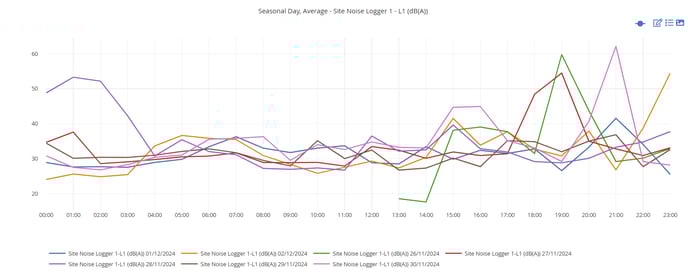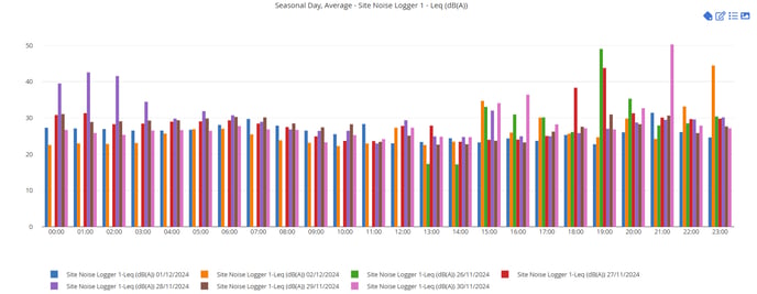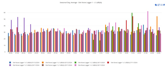 The first is an example of some noise data displayed as a bar. In this example, data is grouped by a day in each series.